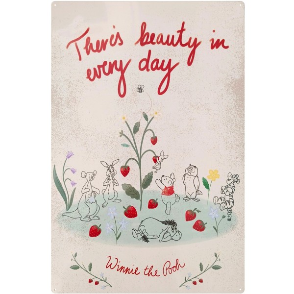 Dit prachtige metalen wandbord van Disney Home presenteert de filosofische Winnie The Pooh met de inspirerende boodschap “There’s Beauty In Every Day”. Met zijn imposante formaat is dit een rustgevend en motiverend statement piece dat de tijdloze wijsheid van Pooh Bear naar jouw interieur brengt.