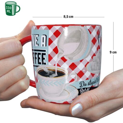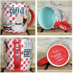 Geniet van je koffie en thee in deze kleurrijke retro koffiemok.