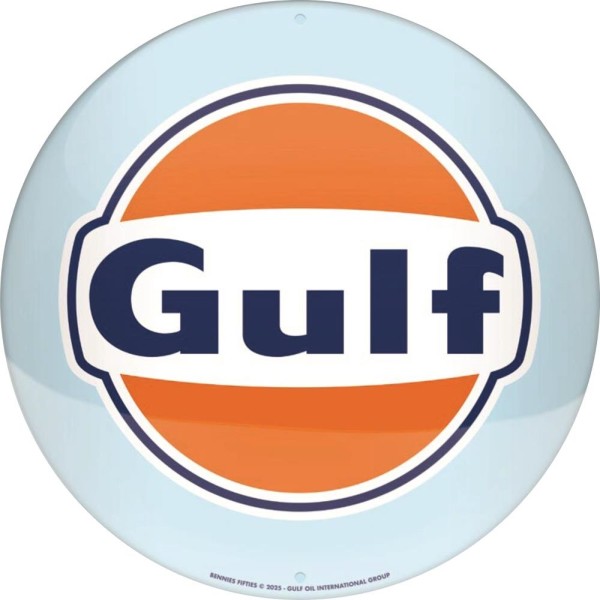 Geef je garage, mancave of bar een iconische race-uitstraling met dit ronde metalen GULF wandbord. Het herkenbare GULF-design is een klassieker in de motorsport en vormt een echte blikvanger aan de muur.